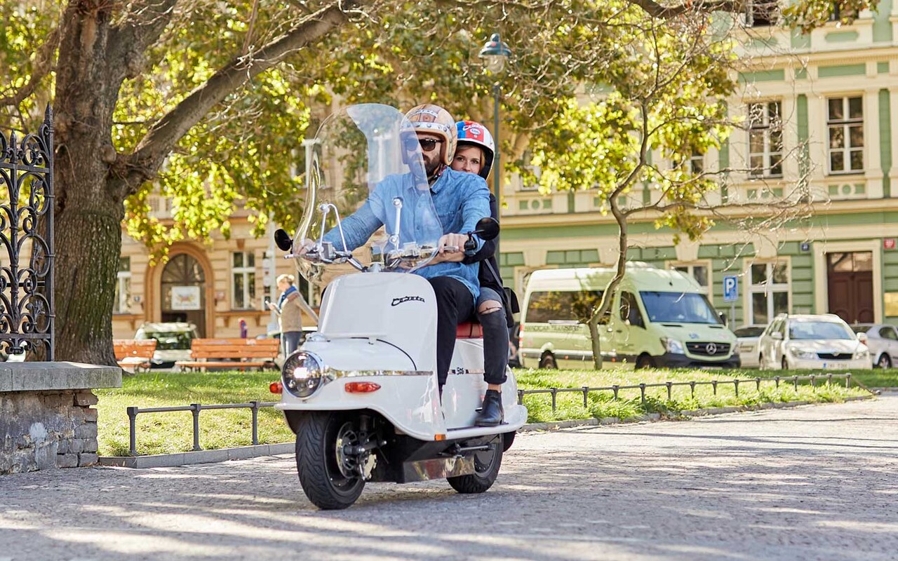 El modelo de scooter Čezeta se creó en los años 50 durante el período de diseño de la posguerra de 'era espacial'. El ideal de los primeros ingenieros checos de Čezeta era diseñar algo tan cómodo como 'un coche sobre dos ruedas'. De esa idea, el diseño icónico de Čezeta evolucionó hasta su famosa forma de cohete, con un asiento especialmente largo para dos personas.
