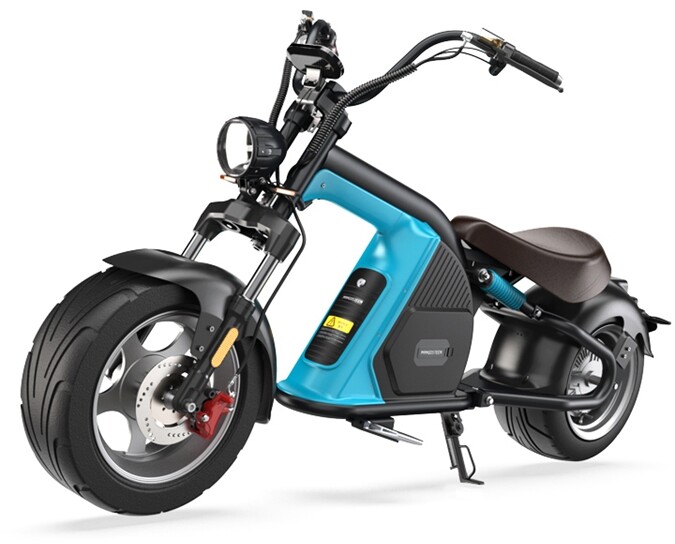 El ciclomotor cuenta con un potente motor eléctrico 2,000 vatios para una velocidad máxima de 45 km/h.