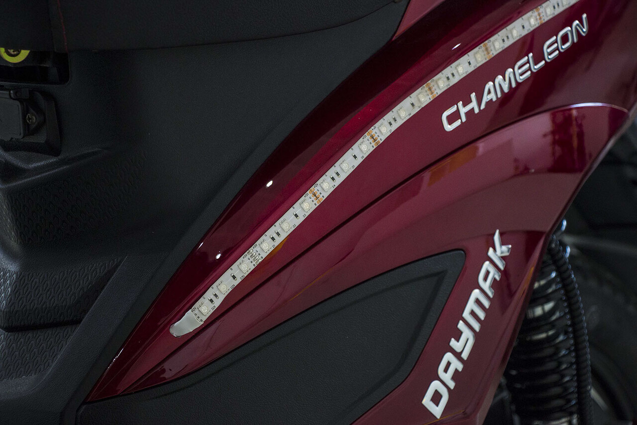 El Daymak Chameleon es un patinete Scooter Eléctrico de Daymak, un fabricante de vehículos eléctricos ligeros (LEV) de Canadá. La empresa fue fundada en 2001 y está dedicada a la movilidad limpia y respetuosa con el medio ambiente. Daymak ha sido nombrada una de las empresas más ecológicas de Ontario y sus productos han ganado un Premio Cleantech North.