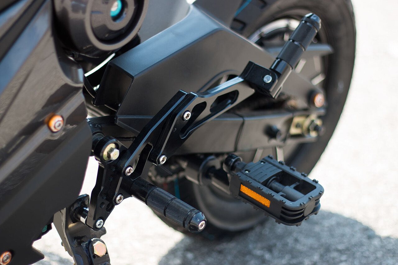 La moto eléctrica dispone de pedales de emergencia y puede utilizarse como bicicleta.