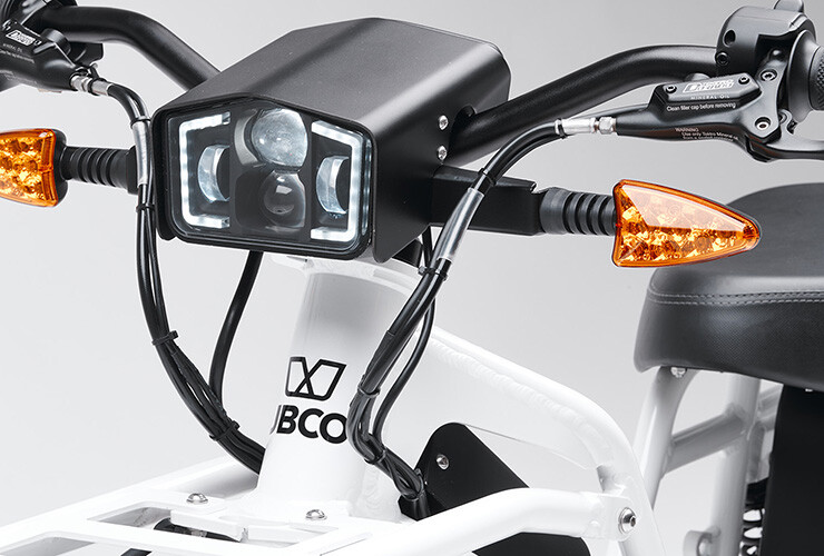 El ciclomotor tiene dos motores eléctricos 2,000 vatios (2.000 vatios en total) para una velocidad máxima de 50 km/h.